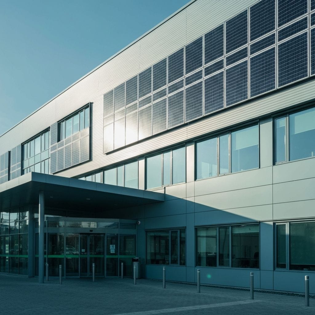 Rooftop and ground-mounted solar installations optimized for hospital load profiles and space.